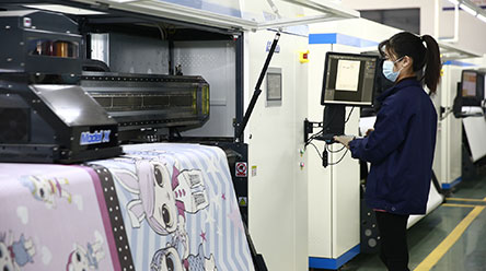 湖州浦鑫家用紡織品有限公司成立于2008年12月,于浙江省湖州市長興夾浦鎮,屬于中國具有經濟活力的長江三角洲地區的中心位置,是中國紡織產業核心集中地。公司專注于研發和生產數碼印花時尚家紡、化纖服裝面料和化纖床上用品面料。產品以自主設計營銷為主,以來樣定制未付、多花色、少批量、快反應零庫存、按需柔性定制、實現下單后72小時內完成數碼噴印到成品出貨全過程。